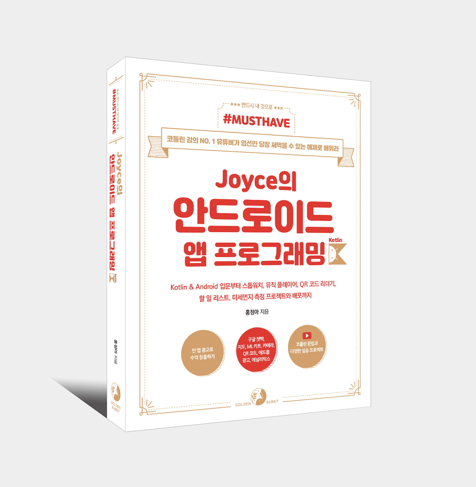 골든래빗에서 출간한 Joyce의 안드로이드 앱 프로그래밍 with 코틀린은 저자의 말처럼 초보자들이 읽기 쉽게 자세히 쓰여있습니다.